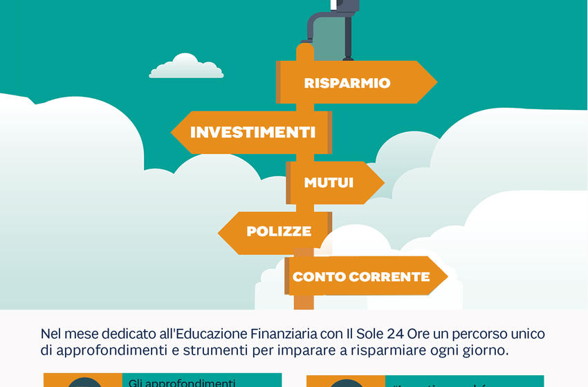 In order to build the awareness of Italian savers & investors and make it part of their daily life, a multitude of languages and opportunities on a par with the stakes of financial education is required: the future of this and of next generations. To this end, for the saving & investing month, a series of initiatives by Il Sole 24 Ore, Radio 24 and Radiocor is scheduled, comprising Guides, books, webinars, videos, radio insights and dedicated newscasts. Specifically, Plus24 is organizing a round of live meetings on the website and social channels (Facebook and LinkedIn) of Il Sole 24 Ore to explore the technicalities of engaging with financial intermediaries and protect savers & investors when making decisions big or small in the financial field. The next event is scheduled for Monday 18/10 and will be dedicated to the theme: Your rights - Investments.